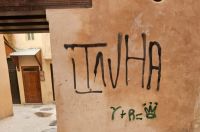 بعد بضعة أشهر على إعادة تاهيلها.. كتابات لا حضارية هركاوية تصيب أسوار الدار الكبيرة